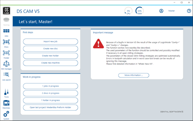The redesigned navigation bar in CAM version 5.0 is more than just a navigation tool. It is a central component of an enhanced user interface that allows for quicker transitions between different workflows while providing a clear overall view. Experience for yourself how the new navigation bar boosts your productivity and simplifies your daily work!
