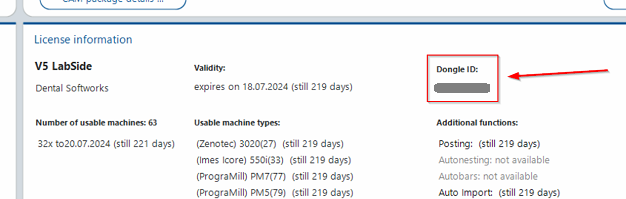 Dann finden Sie die Dongle-ID im unteren rechten Panel: